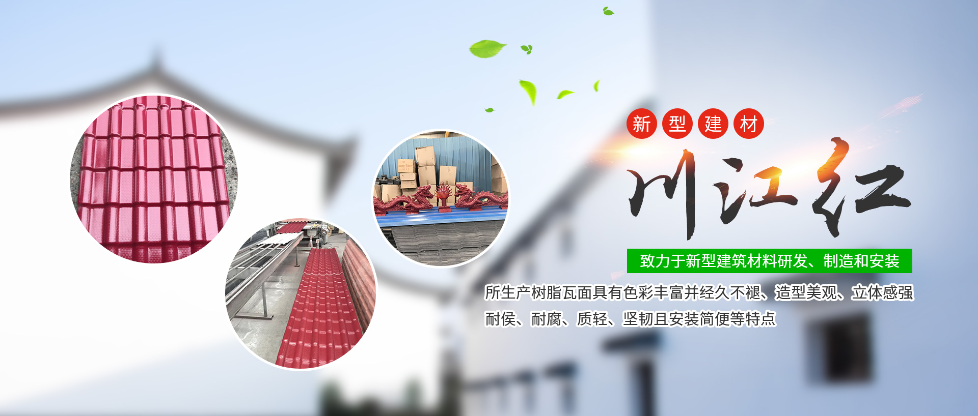成都川江紅新型建材有限公司是2011-03-16成立,是西南領(lǐng)先合成樹(shù)脂瓦制造商,主要從事四川合成樹(shù)脂瓦、成都合成樹(shù)脂瓦的研發(fā)銷售。位于成都市西南航空工業(yè)港,是一家以科技為先導(dǎo),致力于新型建筑材料研發(fā)、制造...